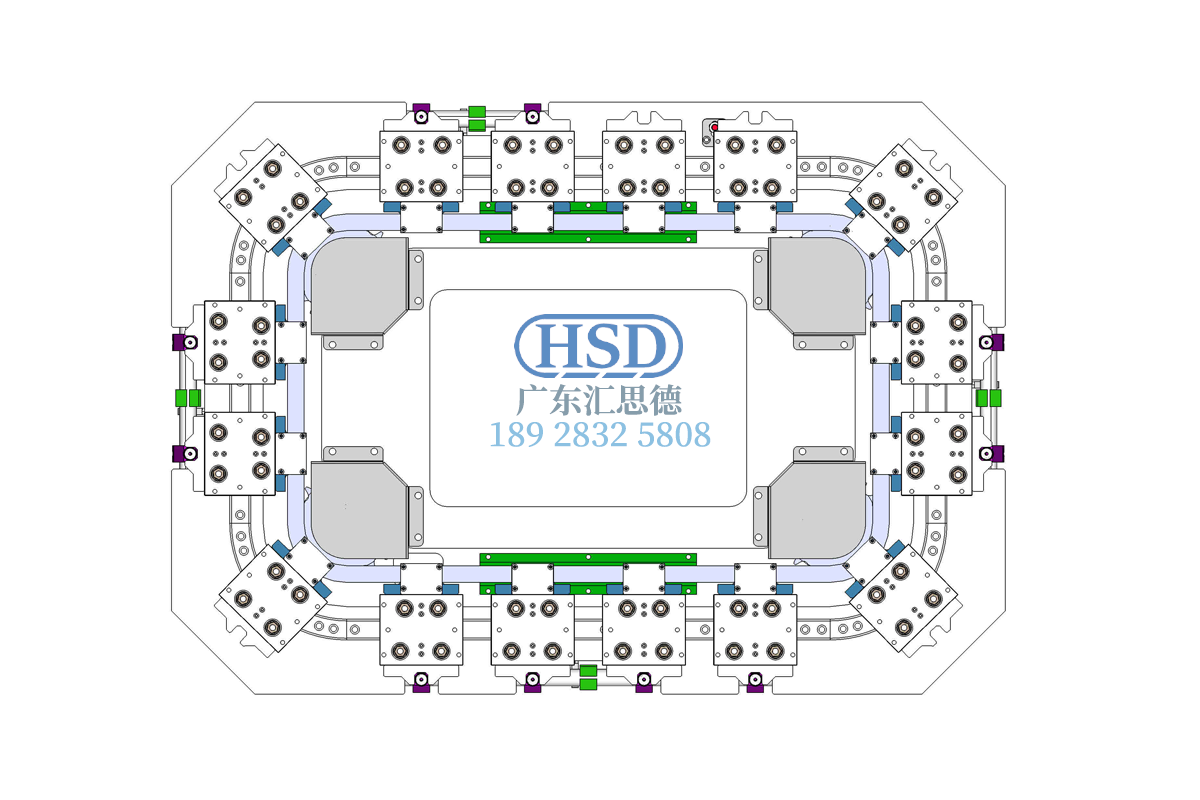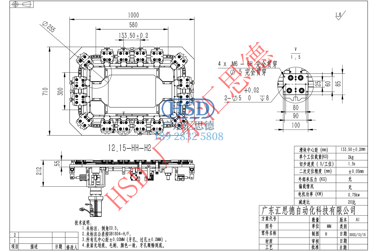 Rectangular metal baseplate chain annular guide rail conveyor line, 16 stations 12 positioning, station spacing 133.5mm, 255mm diameter arc guide rail, automatic conveyor equipment, rectangular baseplate annular guide rail circulation line model.